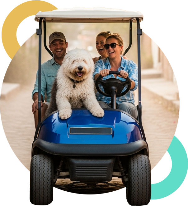 Cruise with the Dawgs! See why a golf cart is the best way to vacation.